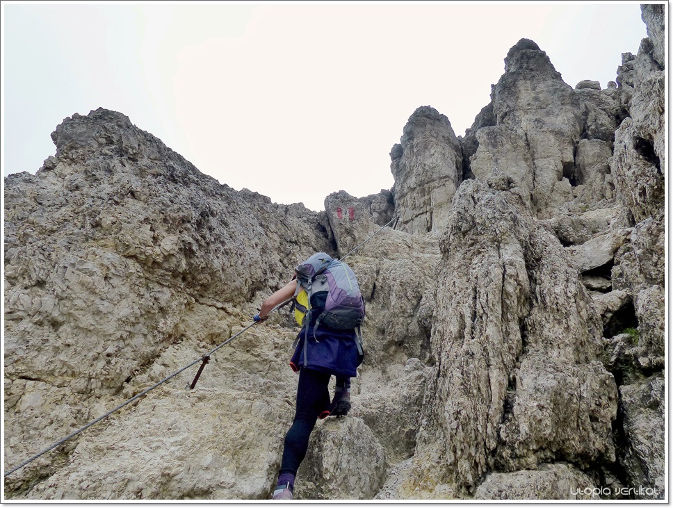 Encontramos la indicación que nos lleva a la dirección a tomar para ganar la cima del Sassongher.